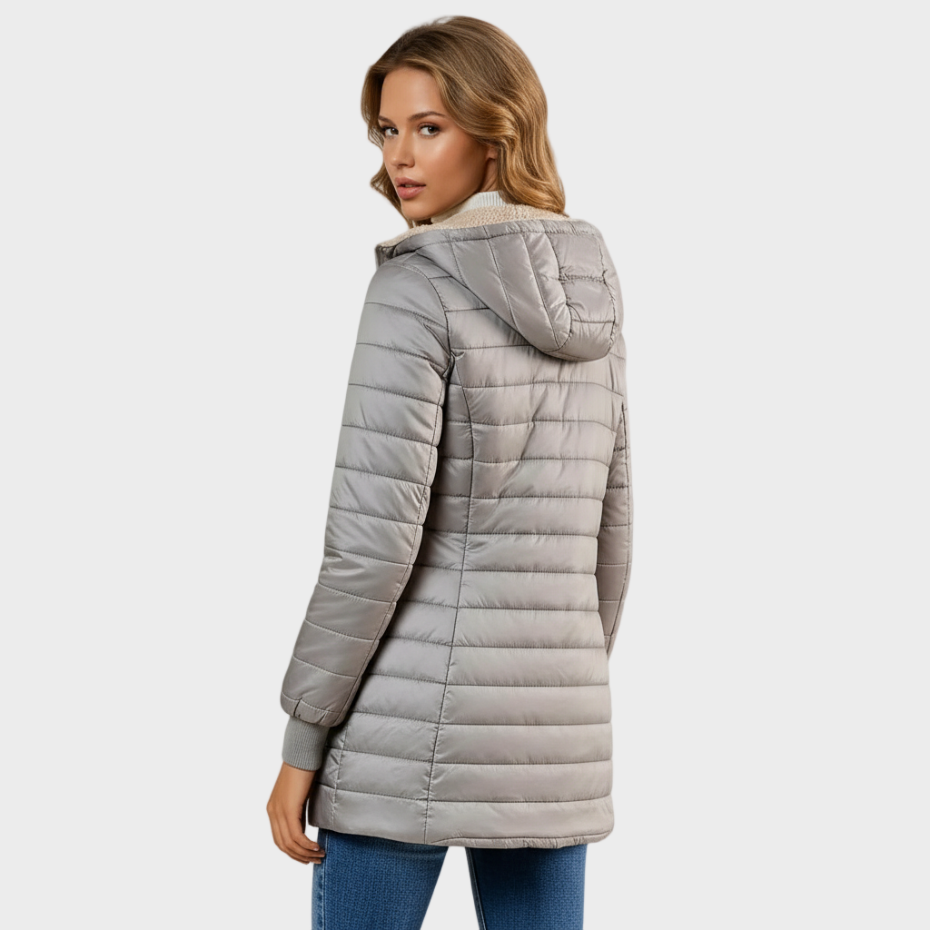 Poboljšaj svoju kolekciju spoljašnje odeće sa kaputom Mišel – dugim, vodootpornim i elegantnim komadom koji spaja praktičnu toplinu sa gracioznim stilom. Dizajniran za žene koje vole udobnost, ali ne žele da se odriču elegancije, podiže svaki outfit – od svakodnevnih, ležernih kombinacija do šik gradskih izgleda. Glatko quilted, mekana podstava i produžena silueta održaće te toplom, samouverenom i savršeno sređenom tokom cele sezone.